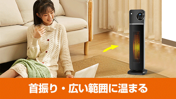 首振り機能付き、もっと広範囲に温まる1台!