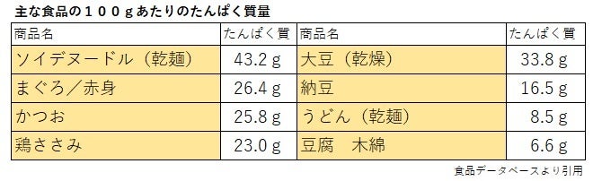 - 主な食品とのたんぱく質量比較