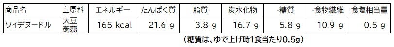 - ソイデヌードルの栄養価は?
