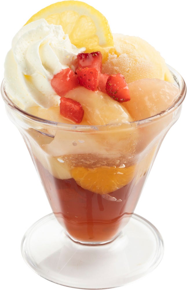 シロップ漬けのミックスフルーツやジューシーな白桃のコンポート、フローズン苺、フレッシュレモンをトッピング。