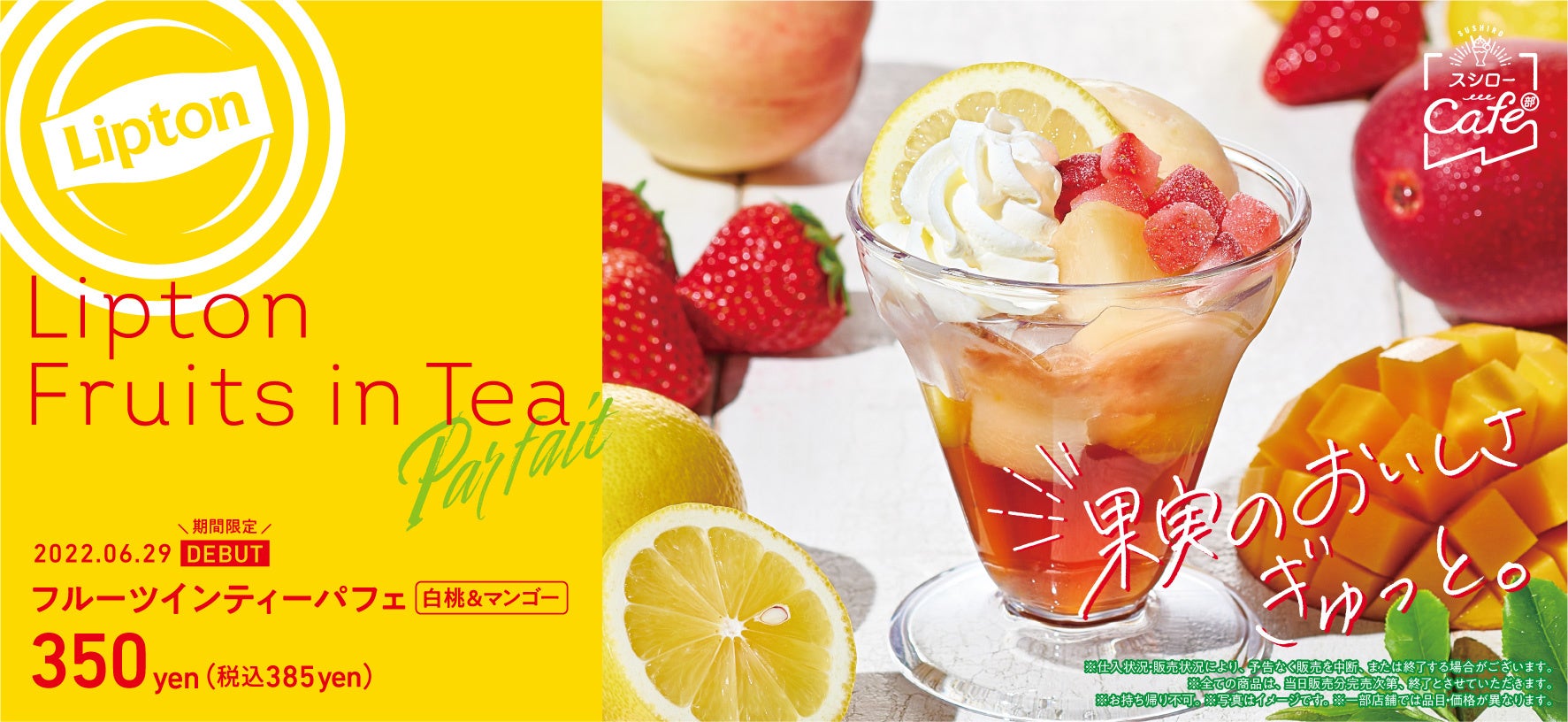 ぜひこの機会に、“スシローカフェ部”の手によってパフェバージョンに生まれ変わった「フルーツインティーパフェ(白桃&マンゴー)」をお楽しみください。また、7月22日(金)から“スシローカフェ部“×「リプトン」の第二弾商品が登場します。第二弾商品にもご期待ください。