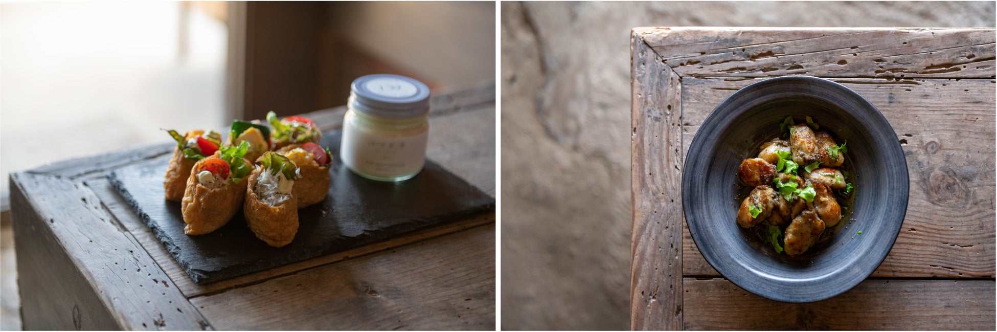 和にも洋にも、マルチに使える田万里家の豆乳マヨネーズ。いなり寿司のトッピングとしてもピッタリで、お稲荷さんの甘さと豆乳マヨの程よい塩気は癖になる味です。レシピはクラウドファンディングページや田万里家インスタグラムでも公開しています。