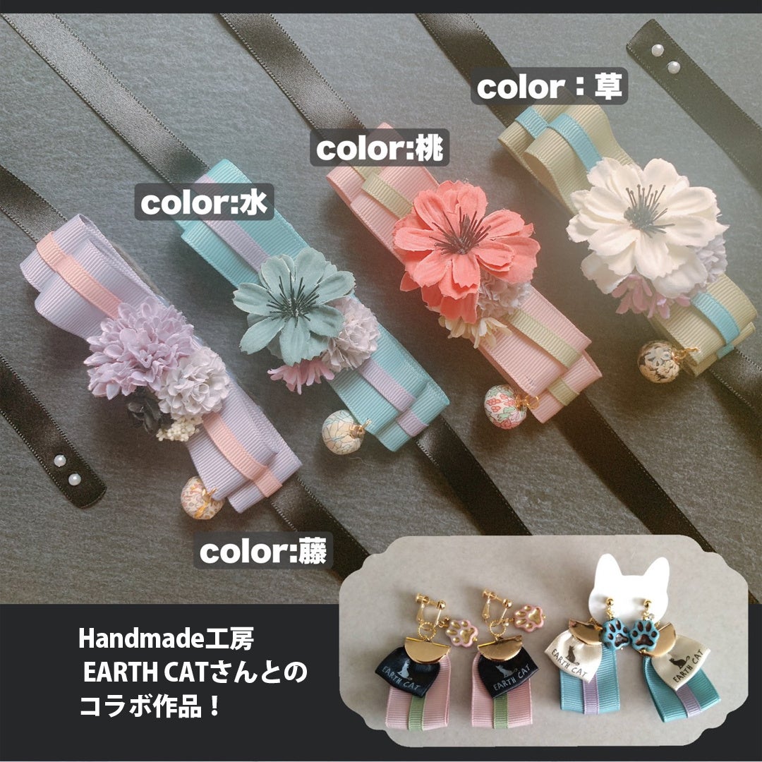 猫ちゃんのおめかしチョーカーと、お揃いデザインのアクセサリー。