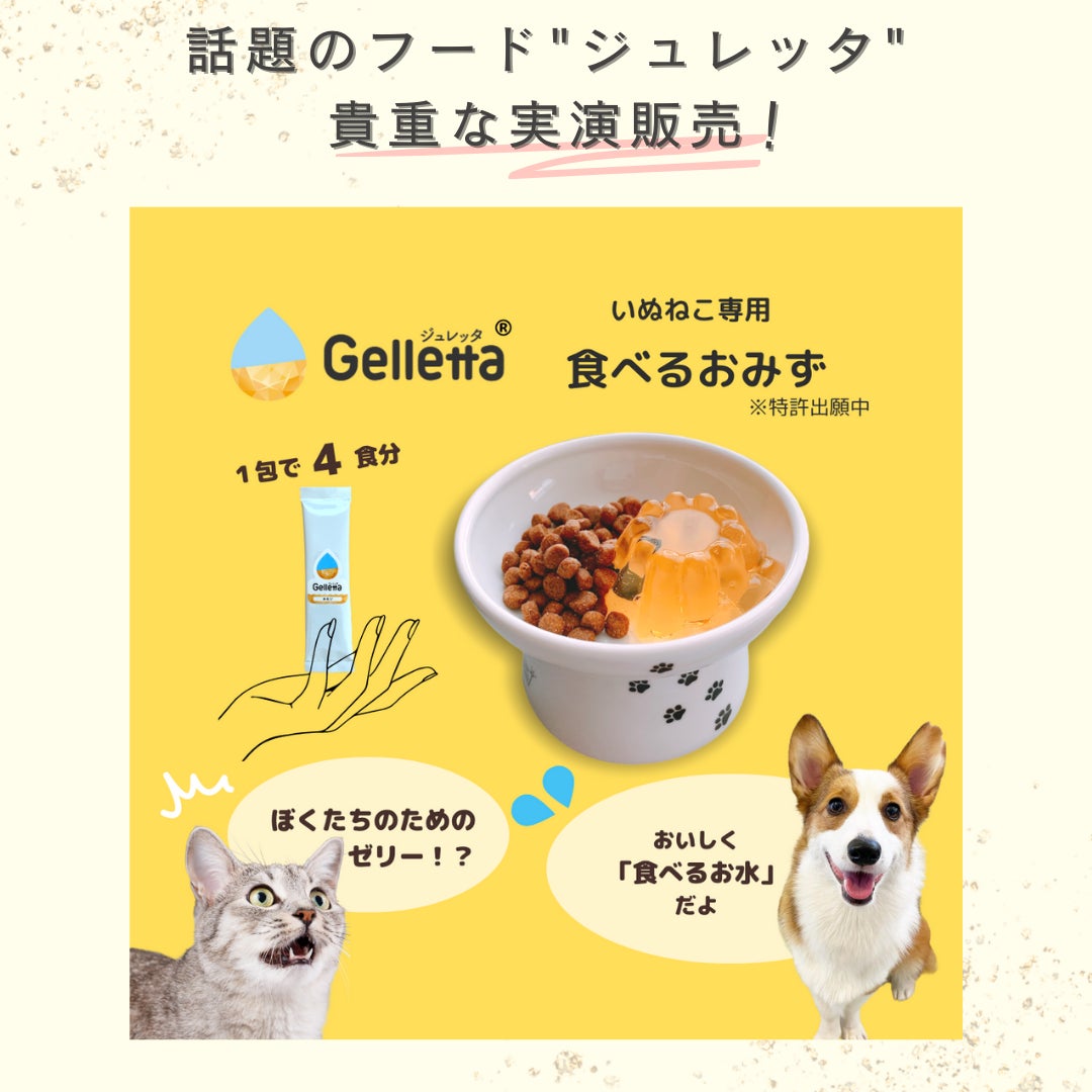 SUMIKAの商品はもちろん、多彩なクリエイターさんをお迎えする今回のイベントでは、ペット栄養管理士が作った”食べるお水”として話題のGellettaによる「ジュレッタ」の実演販売を実施。