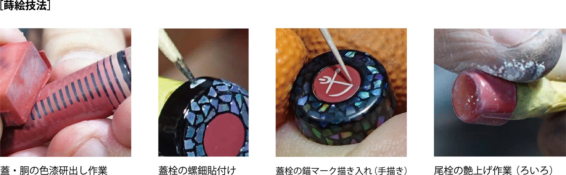 蓋栓:PMMA 樹脂/螺鈿研ぎ出し蒔絵(純金粉蒔き)