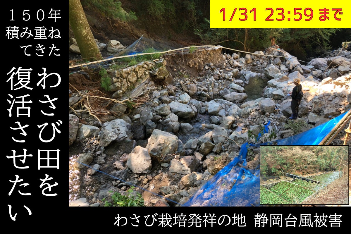 - 江戸時代から続いてきた静岡のわさび農家。台風・豪雨での被災を復興し、日本の味を守りたい。