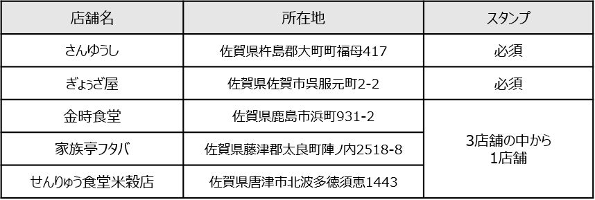 ①「佐賀県×絶メシロード 聖地巡礼MAP」に載っている絶メシ店5店舗の中から、3店舗を巡って絶メシを味わってスタンプをGET!